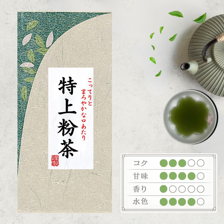 まろやかでこってりとしたコクのある特上粉茶は、心を和ませるお茶の時間にぴったりな逸品です。口に含むと深い旨味が広がります。日常のリラックスタイムに、また特別なひとときを彩るお茶として、お楽しみいただけます。ぜひこの機会に、特上粉茶の豊かな風味をご堪能ください!