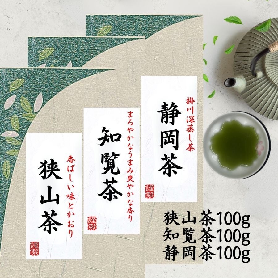 狭山茶・知覧茶・静岡茶セット 各100g合計300g